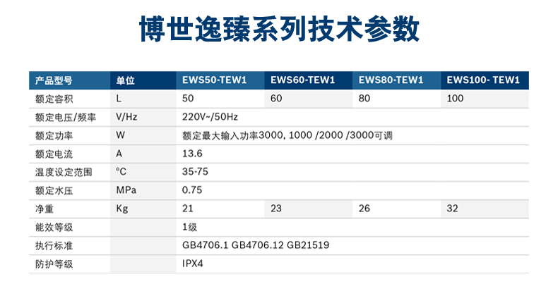 熱水器提供1000W/2000W/3000W三種輸入功率供選擇,用戶可根據(jù)實(shí)際使用需要選擇不同加熱功率,即提高加熱速度,又避免不必要的能源浪費(fèi)。