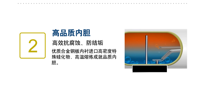 在采用優(yōu)質(zhì)合金鋼板內(nèi)襯進(jìn)口高密度特殊硅化物,經(jīng)高溫熔煉與內(nèi)膽熔為一體,形成高效抗腐蝕,防結(jié)垢的內(nèi)膽保護(hù)層。
