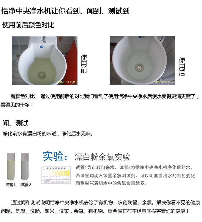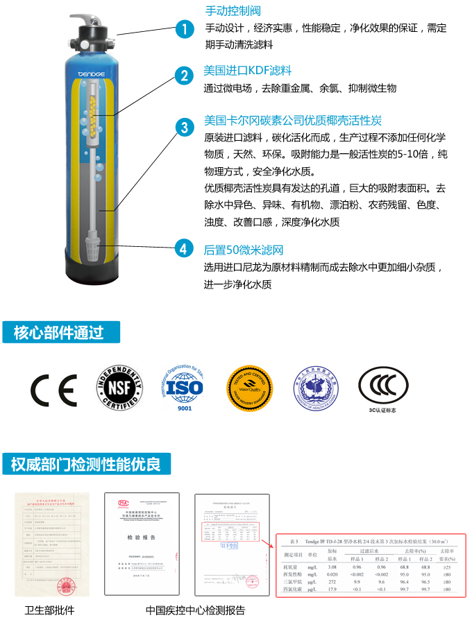 手動中央凈水機(jī)有效去除水中的異色、異味;進(jìn)一步濾除水中微小雜質(zhì)、膠狀體;去除水中的漂白粉余氯、農(nóng)藥、重金屬;保留對人體有益的礦物質(zhì)。使水變得碧清、碧藍(lán),去除對人體有害的物質(zhì)。